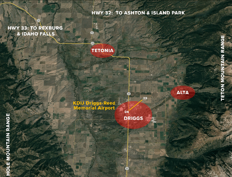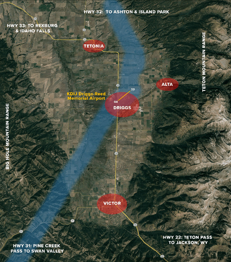 When practicing maneuvers, avoid flights over populated areas and developments (Driggs, Victor, Tetonia, Alta). When conditions and traffic permit, the requested practice area is north of Highway 33 and west of Highway 32.